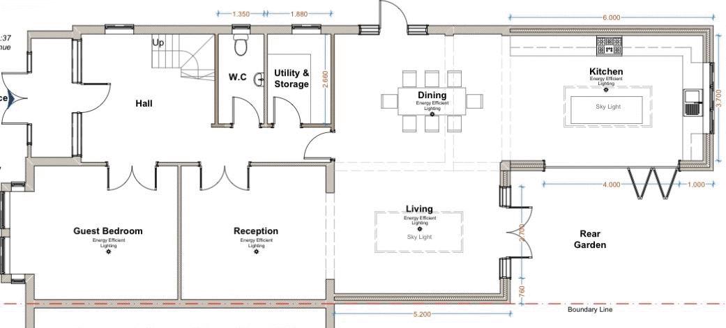 Twin bifold double glazed doors to rear. Underfloor heating and heat exchange unit. Inset lighting to ceiling. Two skylight window lanterns. Tiled flooring. Power points. Panelling to walls. A range of base and eye level units with granite work surfaces. Inset sink unit with mixer tap. Rangemaster gas oven with extractor fan over. Built in fan oven and microwave. Integrated dishwasher and fridge. Island unit with breakfast bar and storage space. Open to: