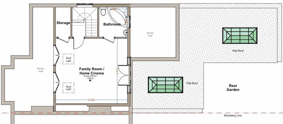 Double glazed French doors to rear with Juliet balcony. Two velux windows to front. Eaves storage. Walk in wardrobe. (Please note this room is presently being used as a cinema room and office).